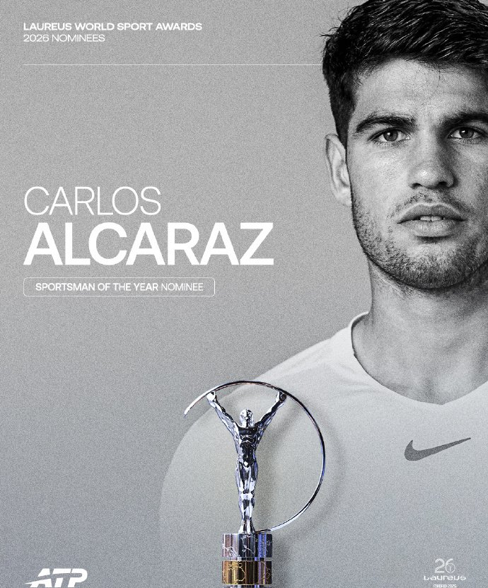同阿尔卡拉斯和辛纳一同竞争佳男大奖的还有法国足球运动员登贝莱、西班牙摩托车选手马奎斯和斯洛文尼亚自行车运动员波加查。